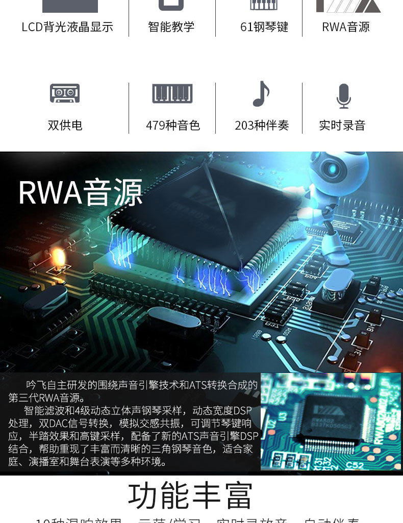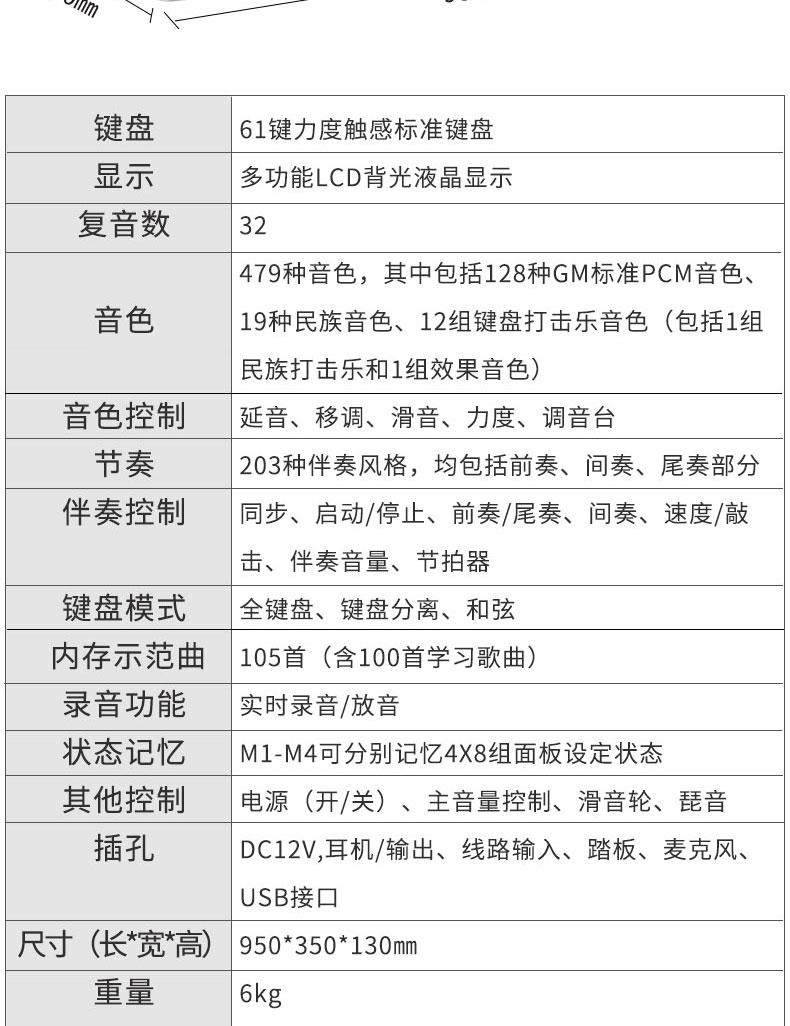 479種音色,12組鍵盤(pán)打擊樂(lè)