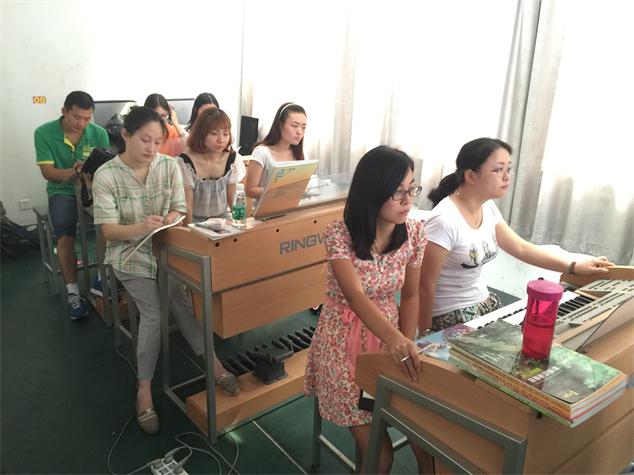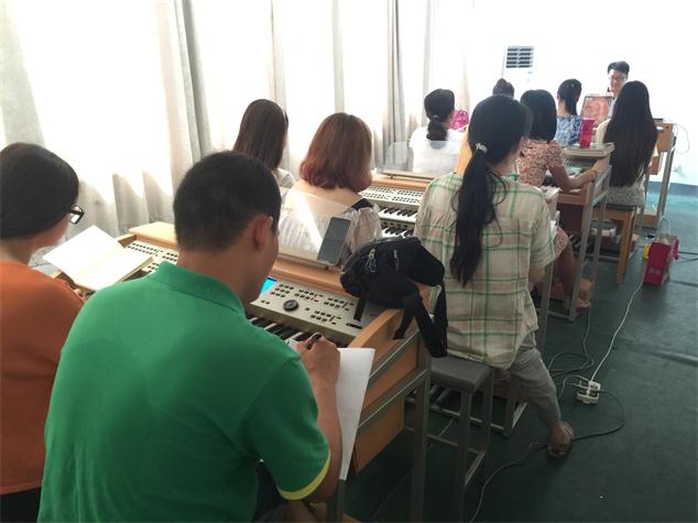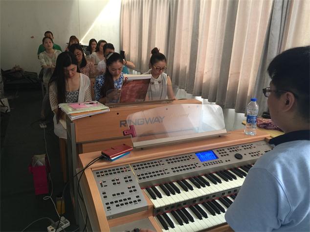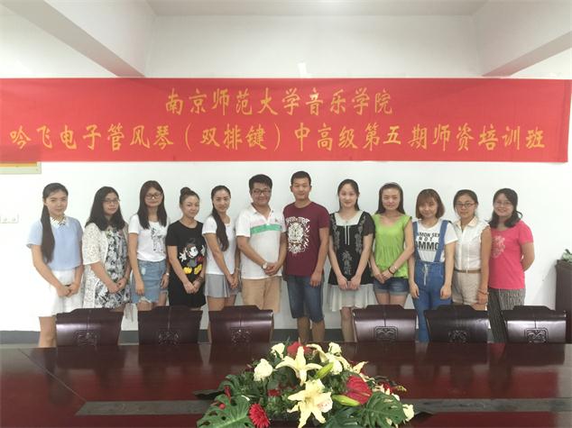 2015年8月17日至19日,南京師范大學(xué)音樂(lè)學(xué)院舉辦了吟飛電子管風(fēng)琴(雙排鍵)中、高級(jí)班第五期師資班,來(lái)自江蘇、山東、重慶、福建、河南等地的老師參加了此次培訓(xùn)。本期培訓(xùn)由吟飛藝術(shù)中心主管華那晨上課,培訓(xùn)內(nèi)容包括“吟飛”電子管風(fēng)琴(雙排鍵)(RS-700)功能的操作及使用復(fù)習(xí)、吟飛電子管風(fēng)琴(雙排鍵)使用、教學(xué)等內(nèi)容進(jìn)行提高培訓(xùn)和結(jié)業(yè)考試等。