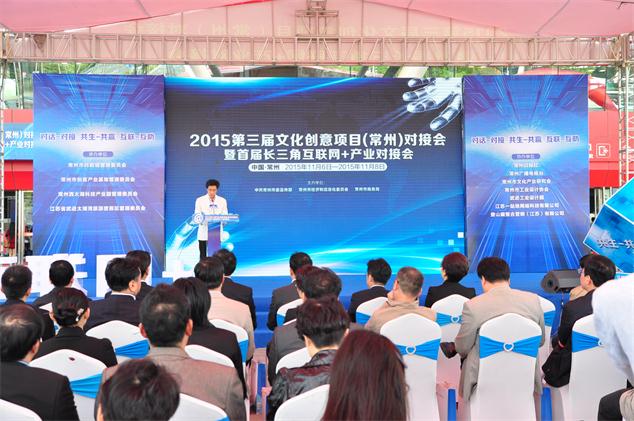 11月6日上午,由中共常州市委宣傳部、常州市經濟和信息化委員會、常州市商務局共同主辦,常州市科教城管理委員會、常州市創意產業基地管理委員 會、常州西太湖科技產業園管理委員會、江蘇省武進太湖灣旅游度假區管理委員會共同承辦的2015第三屆文化創意項目(常州)對接會暨首屆長三角互聯網+產業對接會在常州奧體中心隆重啟幕。來自常州、上海、南京、杭州、蘇州等 地150多家涵蓋互聯網+文化、互聯網+硬件、互聯網+服務等多個領域及其上下游產業鏈的企事業單位參與了本次對接會。中共常州市委常委、宣傳部部長徐纓,常州市經濟和信息化委員會主任朱志洪,常州市商務局局長潘冬鈴等領導出席對接會開幕式。對接會積極貫徹落實了市委市政府下發的《關于推動文化建設上新臺階的實施意見》和《關于加快互聯網經濟發展的意見》,整合常州文化創意產業資源,拓寬產業發展空間,在更高層次上推動了文化和科技融合、項目與資本對接、發展與合作共贏。