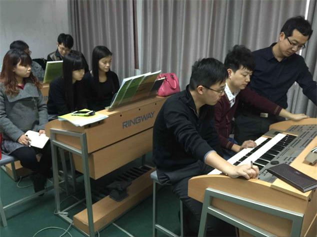 2015年11月16日至25日,南京師范大學(xué)音樂學(xué)院舉辦了吟飛電子管風(fēng)琴(雙排鍵)初級第十一、十二期兩期師資培訓(xùn)班,來自河南、江蘇、山東、浙江、廣東等地的二十多位老師參加了這兩次培訓(xùn)。培訓(xùn)由吟飛藝術(shù)中心華那晨主講,培訓(xùn)內(nèi)容包括“吟飛”電子管風(fēng)琴(雙排鍵)(RS-700)功能的操作及使用復(fù)習(xí)、吟飛電子管風(fēng)琴(雙排鍵)使用、教學(xué)等內(nèi)容進(jìn)行提高培訓(xùn)等。