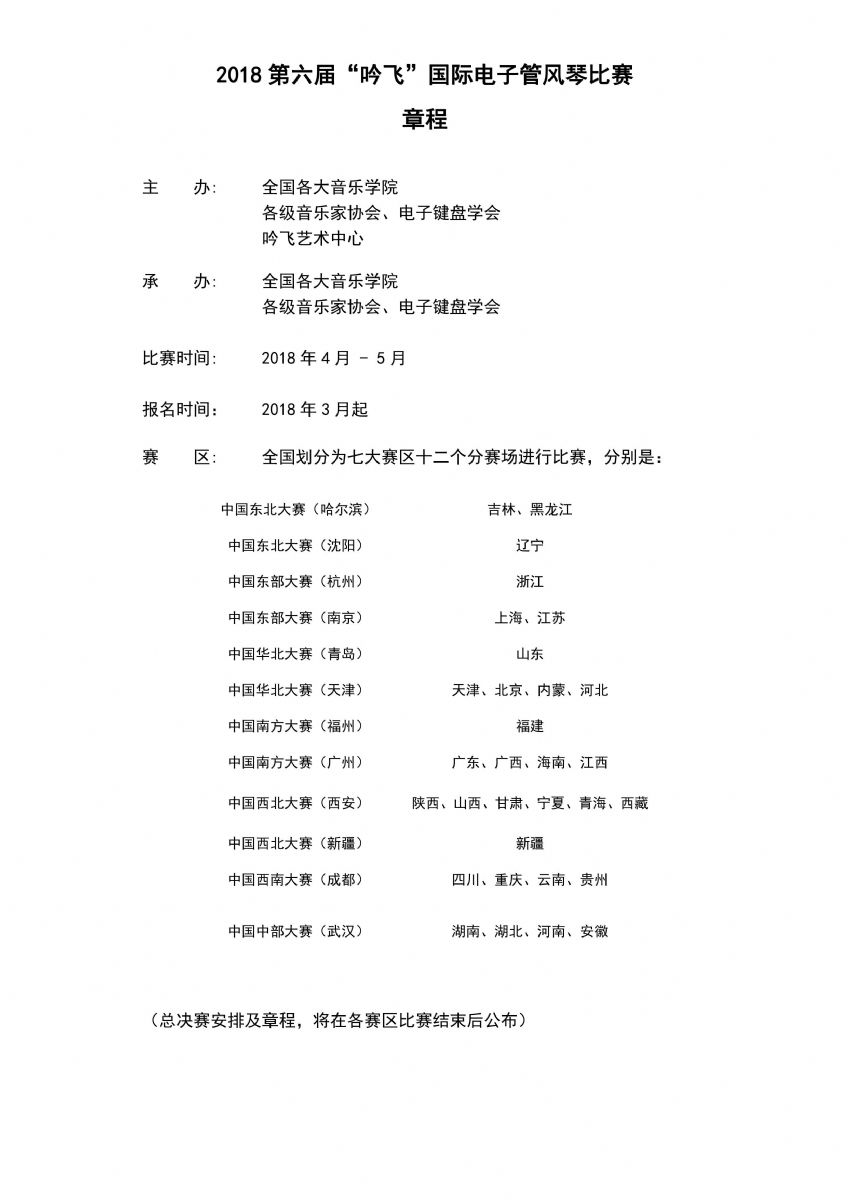 2018第六屆“吟飛”國際電子管風琴比賽即將開始,各賽區的報名通道也將陸續開啟,請各位選手時刻關注各賽區的報名及比賽時間,認真備賽,預祝各位選手都能取得理想的成績!
