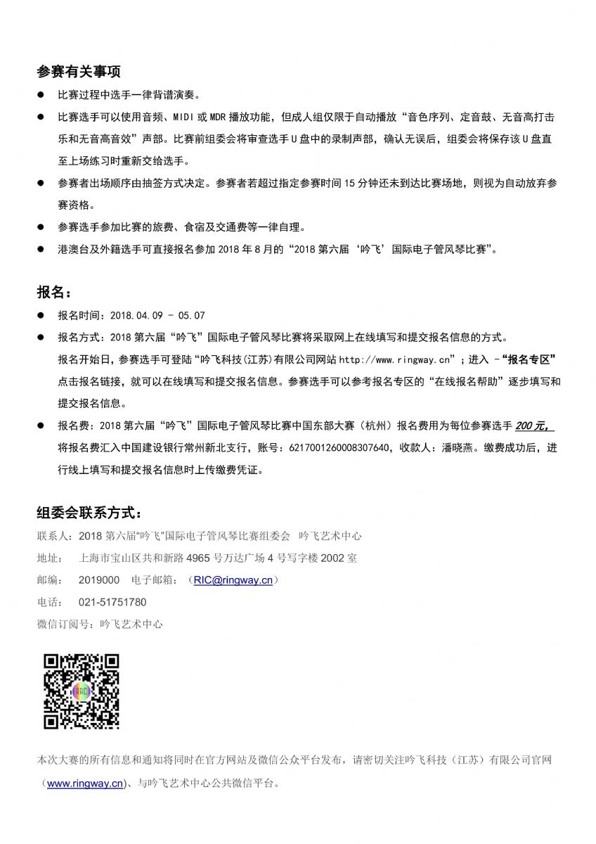 2018第六屆“吟飛”國際電子管風琴比賽中國東部大賽(杭州)賽區參賽指南和詳細賽程稍后也將發布,請隨時關注“吟飛科技(江蘇)有限公司官網www.ascottmeilun.cn”和“吟飛藝術中心”微信公眾號。