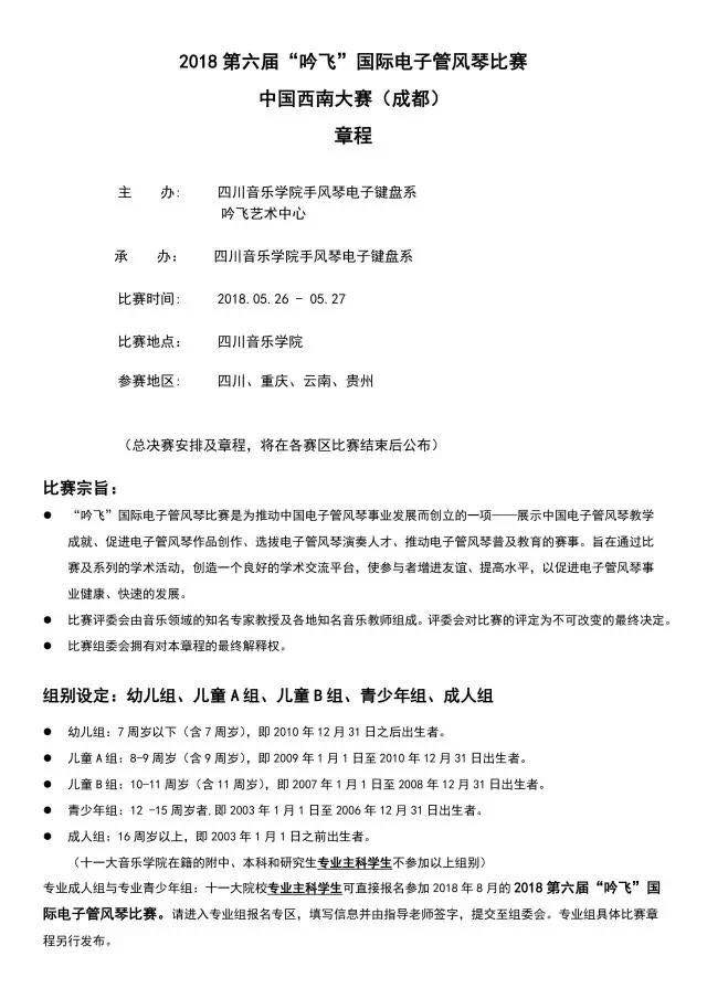 2018第六屆“吟飛”國際電子管風琴比賽中國西南大賽(成都)報名通道將于4月16日—5月14日開啟,請各位要報名的選手不要錯過啦~