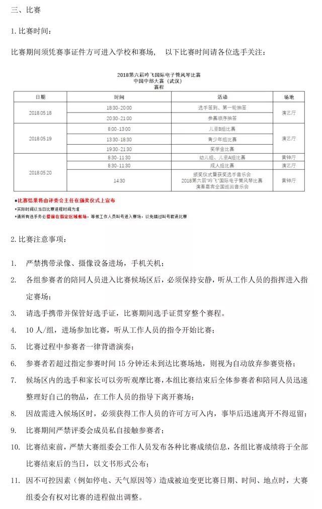 比賽簽到、抽簽時(shí)間